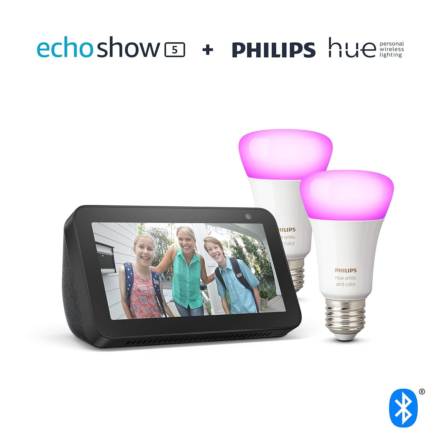 También hay otro pack que incluye el Echo Show 5 y dos bombillas LED inteligentes, estas bombillas las puedes conectar al Echo Show 5 y así controlarlas con Alexa. Simplemente coloca estas bombillas donde quieras y luego dile a Alexa que las encienda y las apague cuando tu quieras. Puedes controlar la intensidad de la luz diciéndole a Alexa que atenúe o de más brillo a las bombillas.