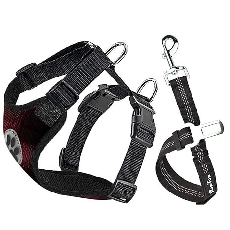 Este arnés con chaleco lo hay de varias tallas y colores, la correa es elástica, por lo tanto el perro podrá acomodarse en el asiento trasero pero no saltar por la ventana o al asiento delantero. El arnés es ajustable para los diferentes tamaños de los perros. También se puede comprar junto al Protector para coche impermeable.