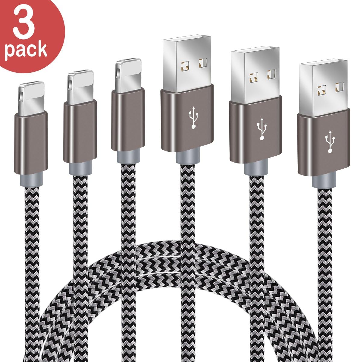 El segundo es este pack de 3 cargadores de Zeuste, con 3 cables de 1,5 metros de longitud cada uno. Color gris. Compatible con infinidad de dispositivos de Apple, tiene 2 mm más de grosor que los cables estándar y están hechos de tela de fibra de nylon trenzado resistente y de alta calidad que permite mayor resistencia frente a las roturas por frecuentes tirones, sobre todo cerca de los conectores. Este pack de 3 es ideal, ya que si alguno se daña aún tienes más de repuesto.